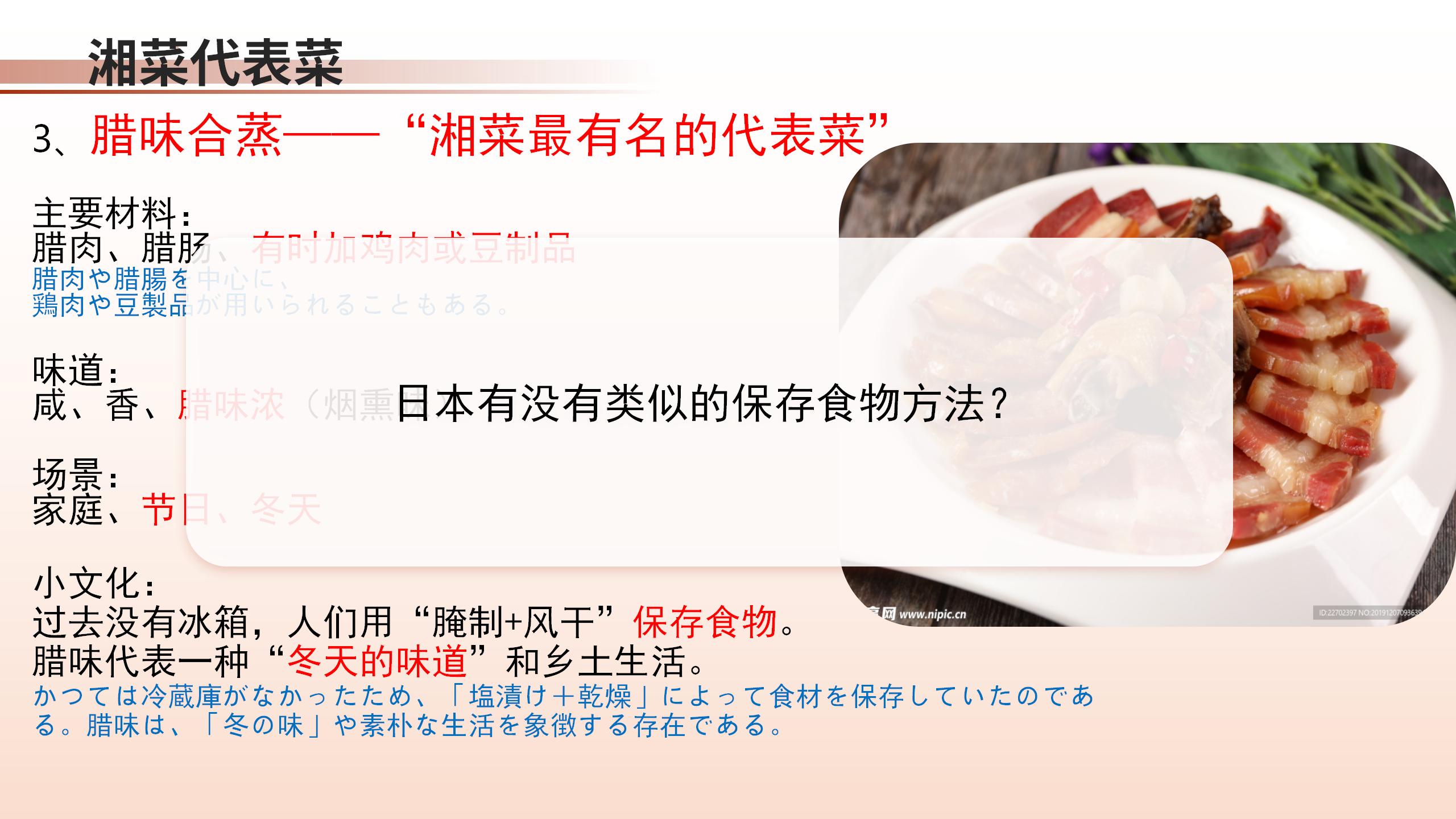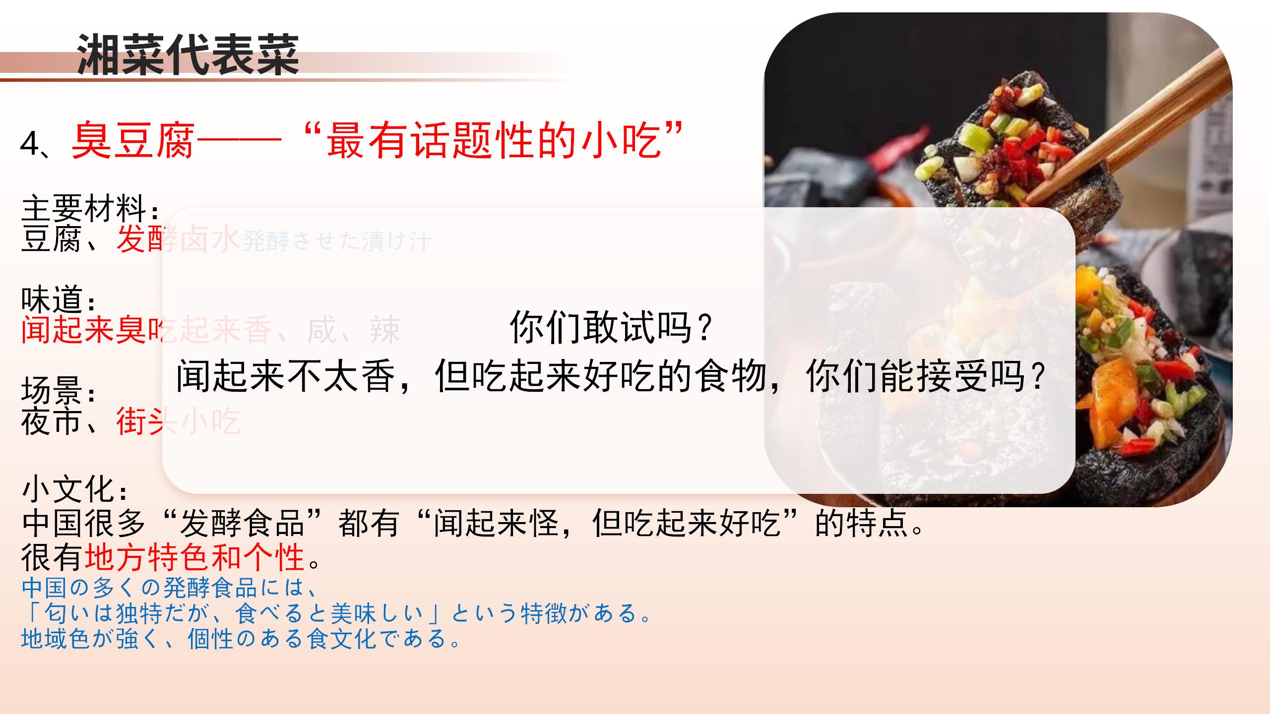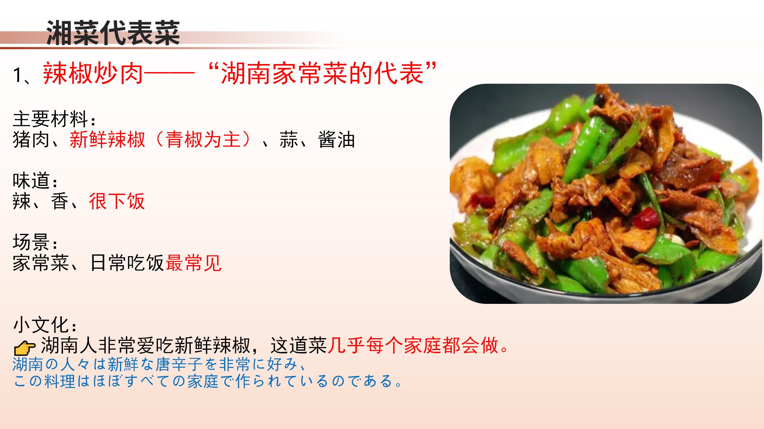 湘菜(湖南料理)は、中国八大料理の一つとして、単なる調理芸術にとどまらず、湖南の人々の情熱と果敢に新しい道を切り開く気風を体現しています。