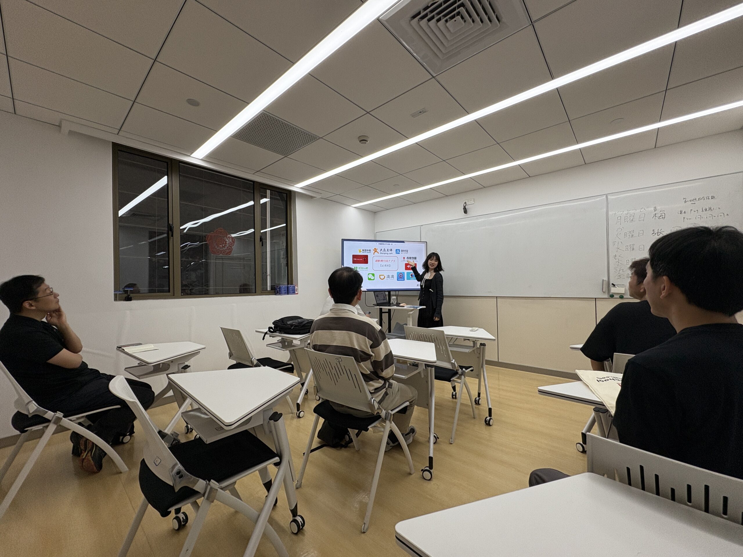 バンコクから遠路はるばるお越しの立野様(京都銀行 タイ支店支店長)を心より歓迎しました。10 年の時を経て、中国語学習を再開されることとなりました。